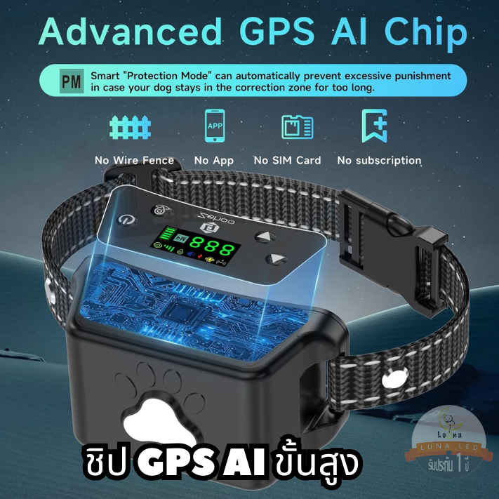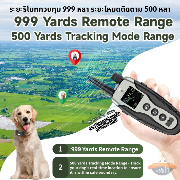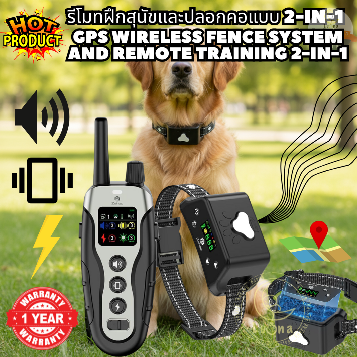 รีโมทฝึกสุนัขและปลอกคอแบบ 2-in-1 GPS Wireless Fence System and Remote Training 2-in-1 ประกัน 1 ปี GPS Wireless Fence System and Remote Training 2-in-1,999 Yards Safe Radius and Remote Range,Beep,Vibration,Safe Shock,Night Lighting,IPX7 Waterproof