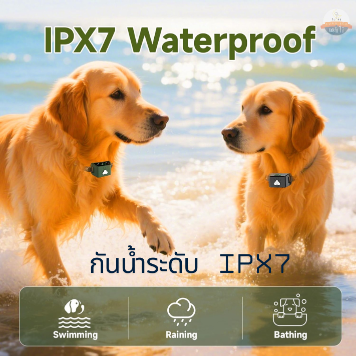 ระดับการกันน้ำ IPX7 ช่วยให้สุนัขของคุณสามารถเล่นได้อย่างอิสระขณะอาบน้ำ ฝนตก หรือว่ายน้ำได้ แต่ตัวส่งสัญญาณ (รีโมท) ไม่กันน้ำ