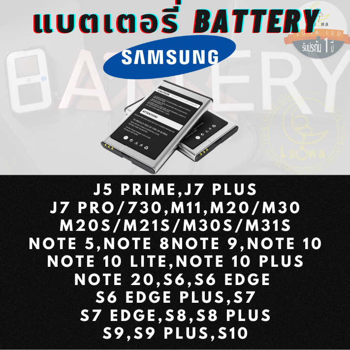 Battery แบตเตอรรี่สำหรับ Samsung ซัมซุง รุ่น J5 PRIME,J7 PLUS,J7 PRO/730,M11,M20/M30,M20S/M21S/M30S/M31S,NOTE 5,NOTE 8,NOTE 9,NOTE 10,NOTE 10 LITE,NOTE 10 PLUS,NOTE 20,S6,S6 EDGE ,S6 EDGE PLUS,S7,S7 EDGE,S8,S8 PLUS,S9,S9 PLUS,S10