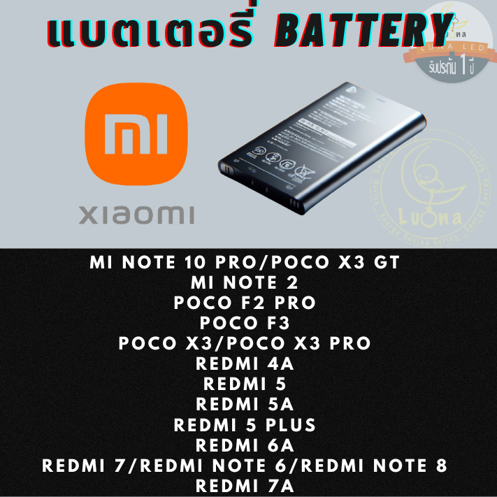 Battery แบตเตอรรี่สำหรับ Xiaomi เสียวหมี่ รุ่น MI NOTE 10 PRO/POCO X3 GT,MI NOTE 2,POCO F2 PRO,POCO F3,POCO X3/POCO X3 PRO,REDMI 4A,REDMI 5,REDMI 5 PLUS,REDMI 5A,REDMI 6A,REDMI 7/REDMI NOTE 6/REDMI NOTE 8,REDMI 7A