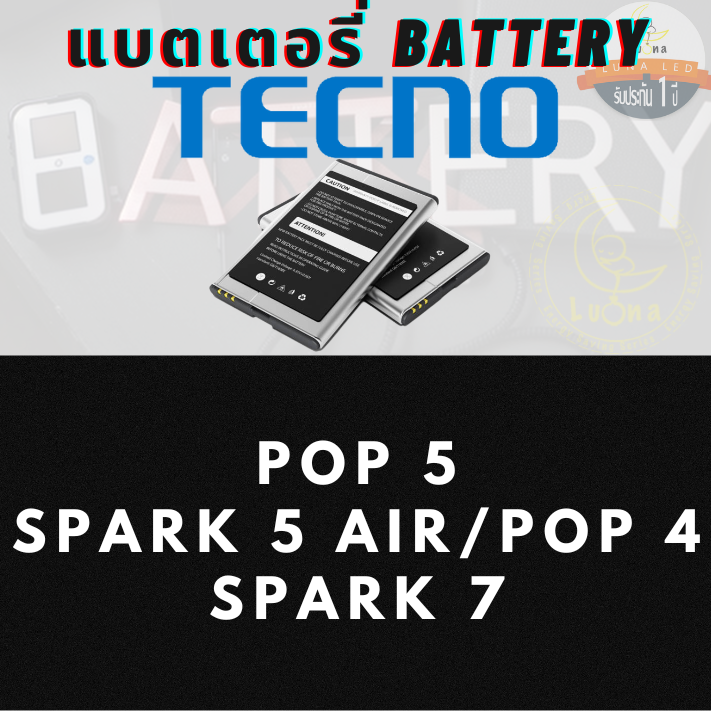 แบตเตอรี่มือถือ คุณภาพดี ราคาถูก สำหรับ TECNO เทคโน โมบาย รุ่น POP 5,SPARK 5 AIR/POP 4,SPARK 7 แนะนำให้ลูกค้า แกะสติ๊กเกอร์สีทองตรงขั้วแบตออกก่อนลองกับเครื่อง (ถ้ามีนะคะ) สำหรับการใช้งานครั้งแรก ให้ชาร์จแบตทิ้งไว้ 4-6 ชั่วโมง เป็นการวอมแบต จะดีต่อการใช้งาน และไม่แนะนำให้ใช้กาวหลอดติดแบต เพราะจะทำให้สภาพแบตไม่สมบูรณ์ และเคลมไม่ได้ค่ะ