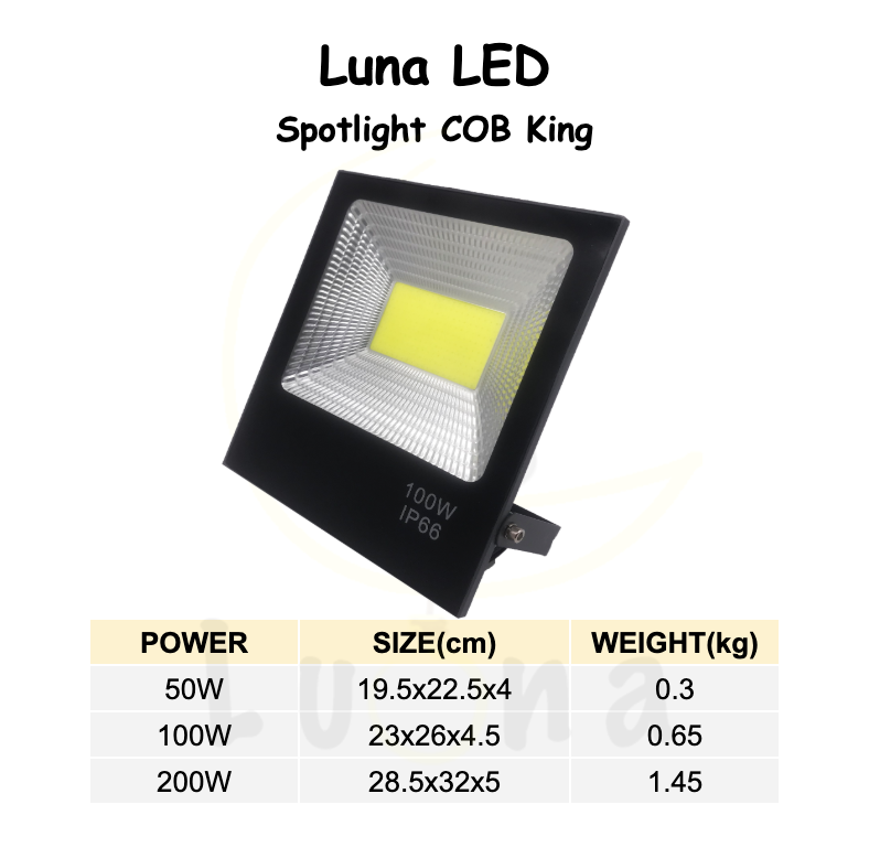 [ สว่างมาก ] ราคาถูก สปอตไลท์ ฟลัดไลท์ 50W/100W/200W Luna LED รุ่น COB King Spotlight Floodlight [ ประกัน 1 ปี ]